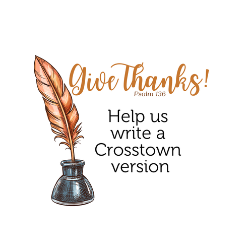 We are taking Psalm 136 and rewriting it as a Crosstown Psalm of thanks. David gives us a great example of praise to the Lord and remembrance of His deliverance. The Old Testament is full of intentional praise and remembrances of God's deliverance. Apparently it is easy to forget what He has already led us through. That's why this year we are trying to remember Crosstown's history.
