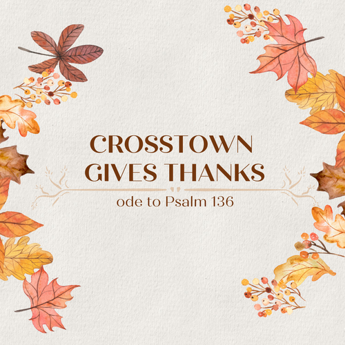 An ode to Psalm 136 reflecting on the Lord's hand in Crosstown's 34 year history. Contributions were collected from the congregation and compiled by Kristi Johnson.