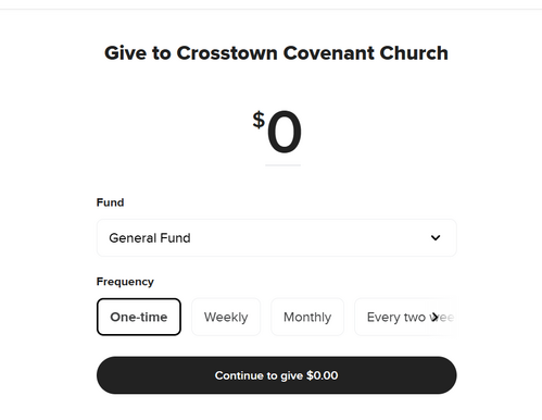For your convenience we have an online donation option. This can be utilized for a one-time donation, scheduled tithe, or special project denoted in your notes.